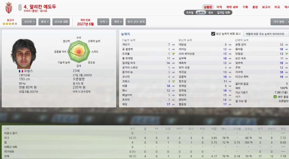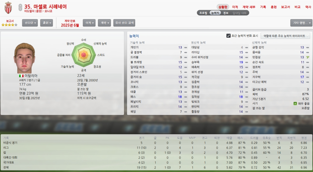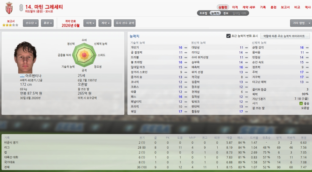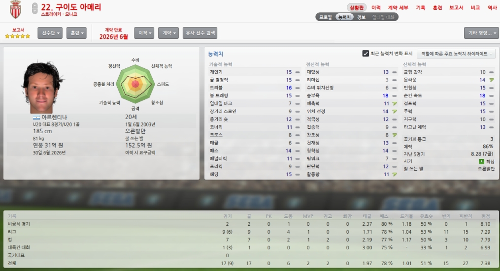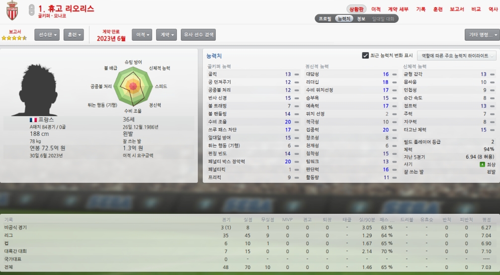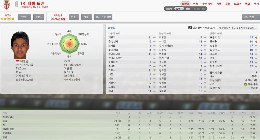 올시즌초 취약포지션이였던 레프트윙을 성실히 메워주었습니다.
