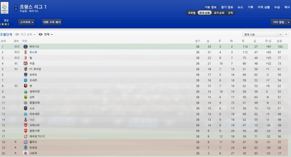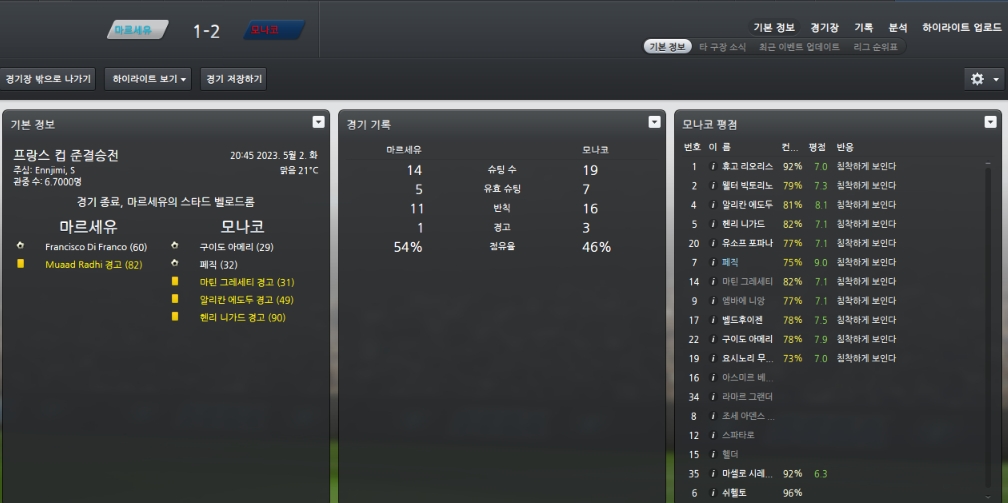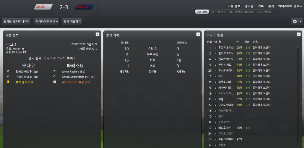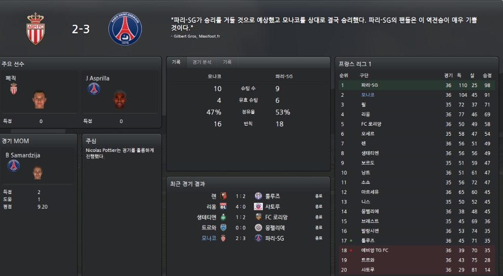 리그막바지에 파리생제르망과의 홈경기에서 2-3으로패배하며