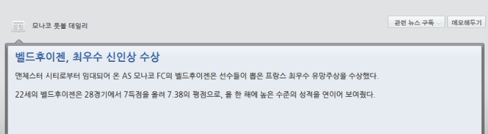 프랑스리그 최우수신인상을 수상했습니다.