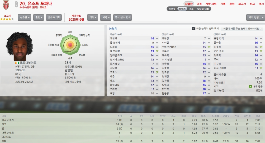 올시즌 팀내 경쟁상대가 없었던 레프트윙백 유소프 포바나 입니다.