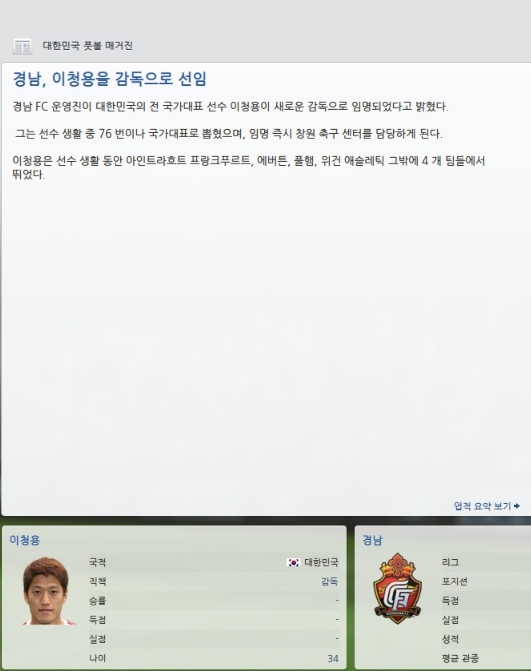 이청용선수가 감독이 되었습니다.