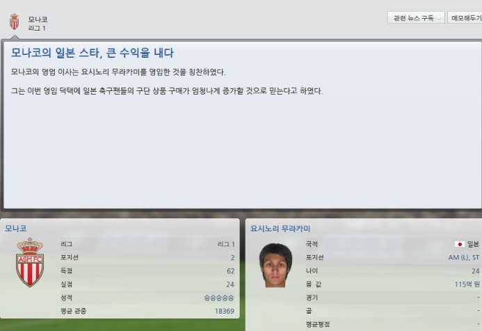 1월시장에 영입한 레프트윙요시노리 무라카미는