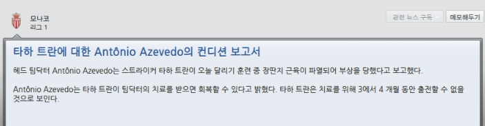 39분 모나코 마틴 만회골 (1-2)