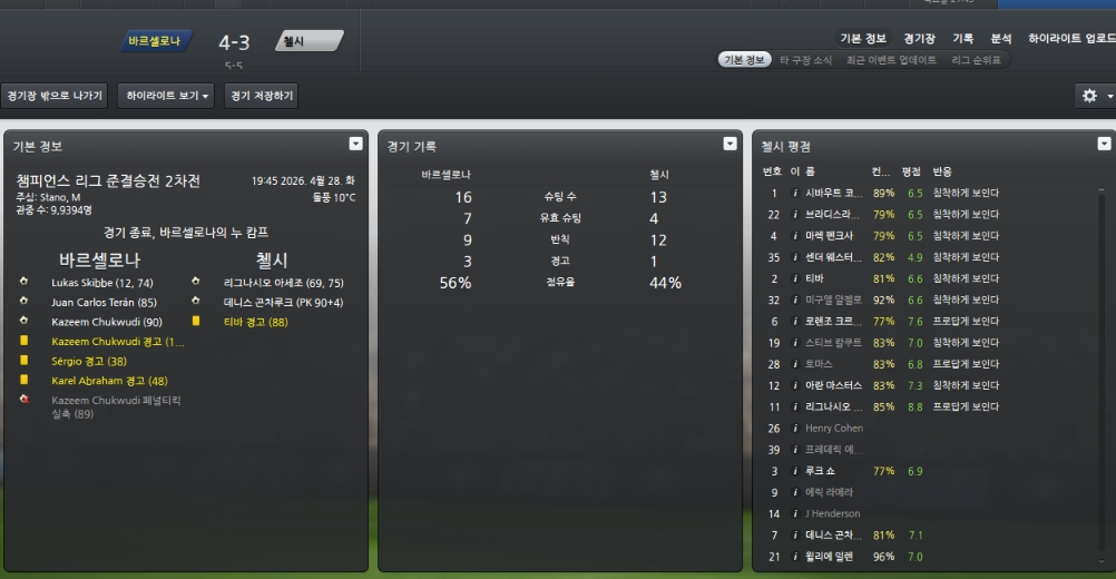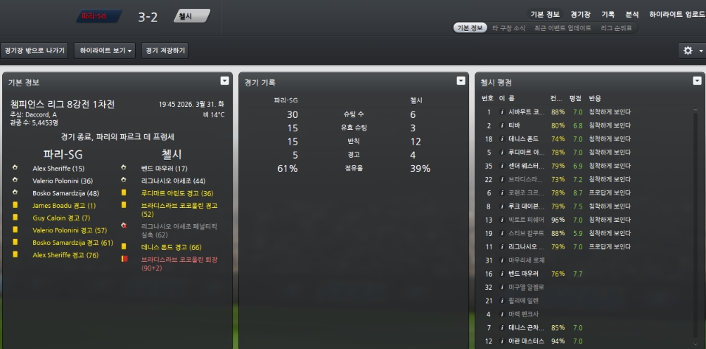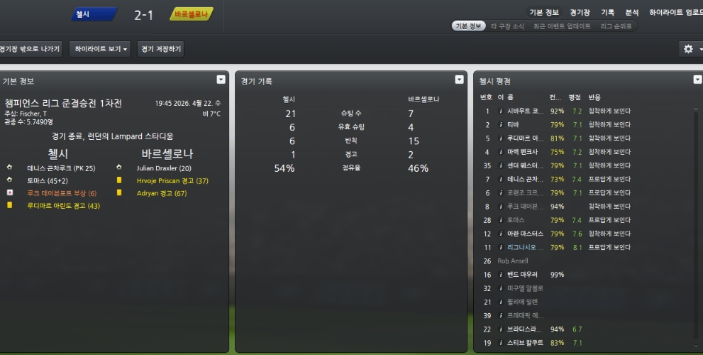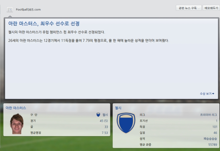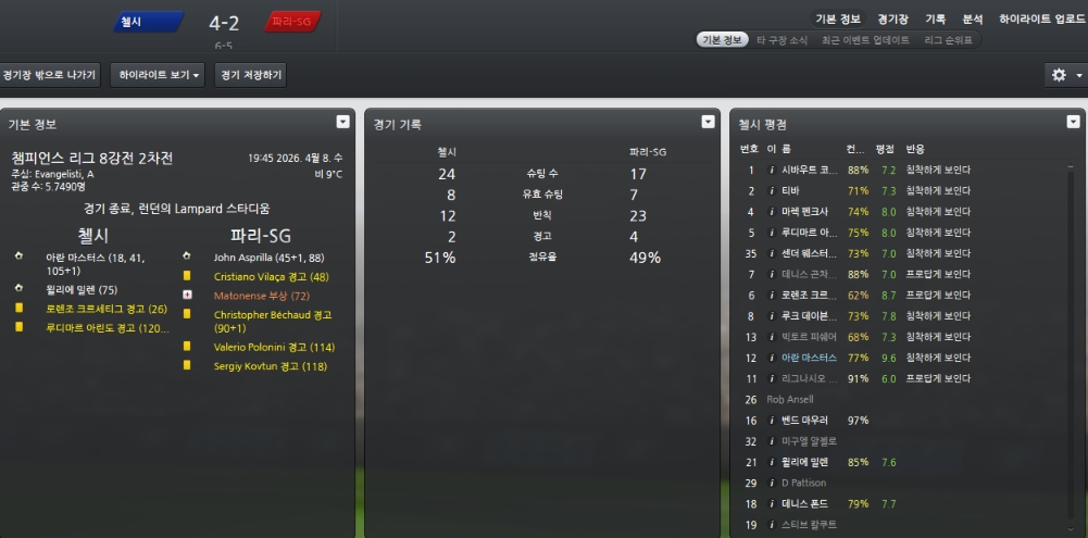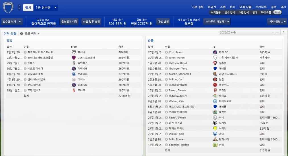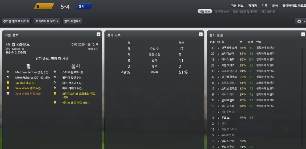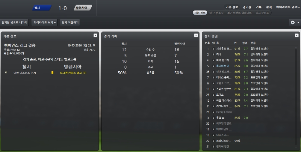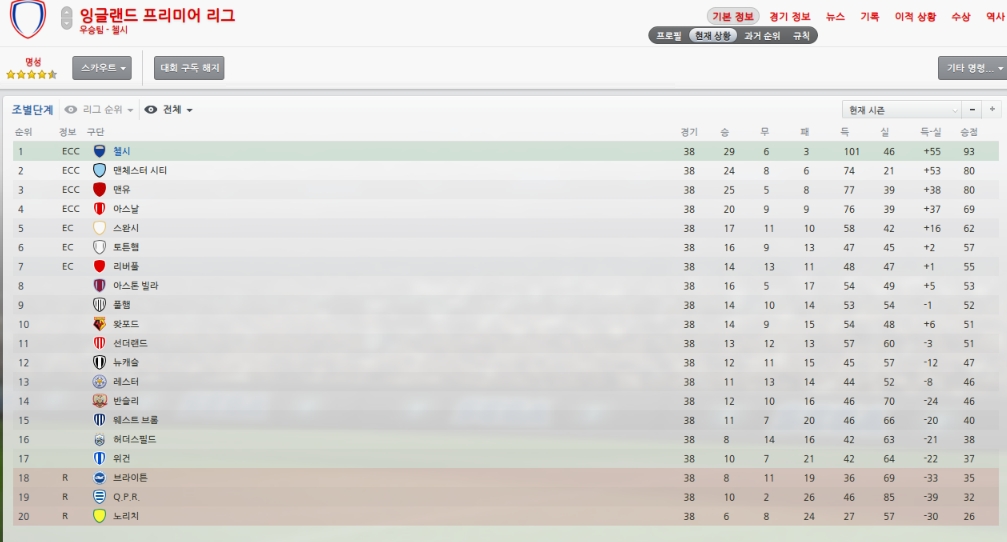 [스샷] FM 2013유재석감독15년차-1)잉글랜드프리미어리그(25/26)2026첼