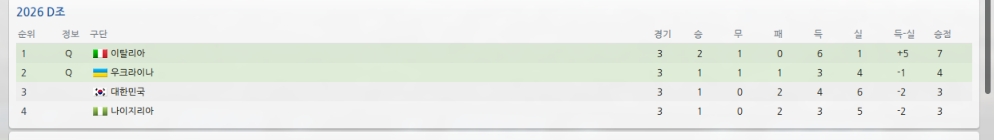 2026멕시코 월드컵에서 조예선에 탈락하고 말았습니다.
