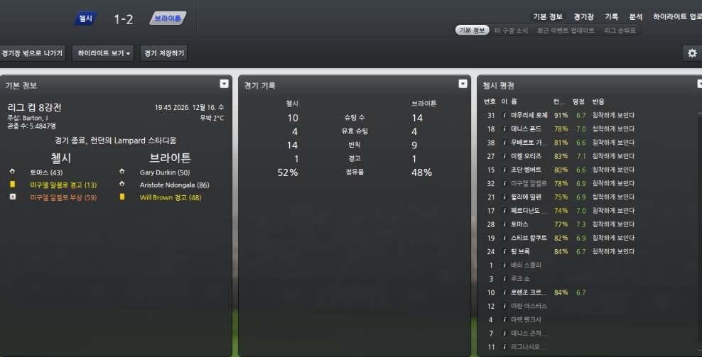 3부리그팀 브라이튼에게 불의의 일격을 당했습니다.