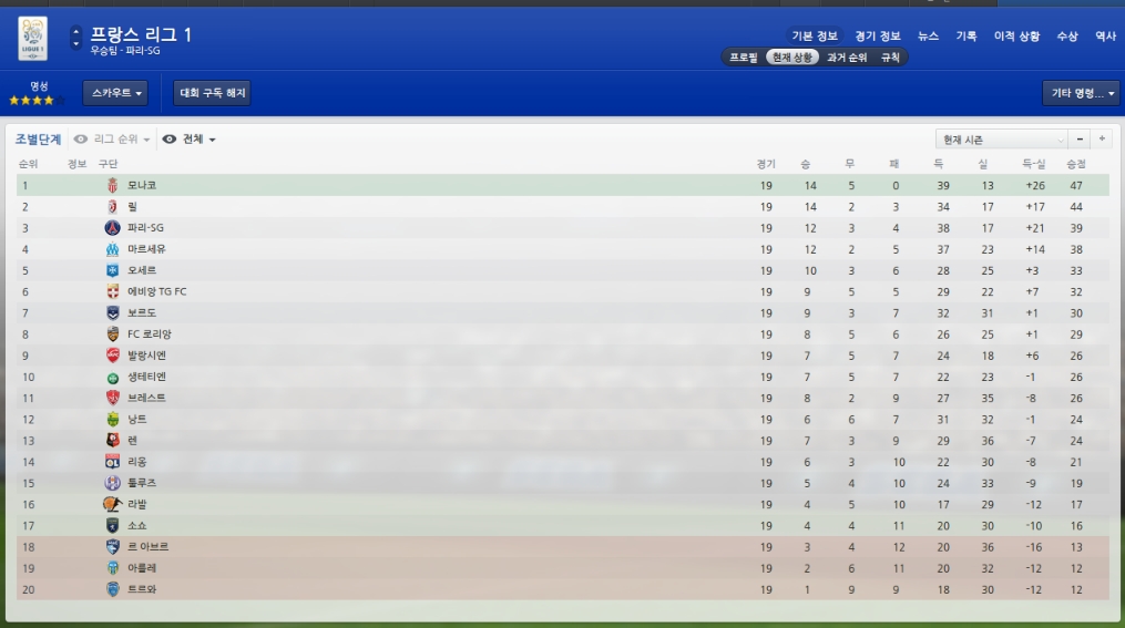 프랑스리그에선 모나코가 1위를 달리고 있습니다.