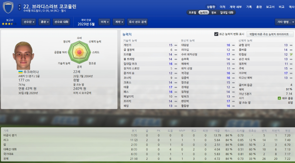 브라디스라브 코코울린은 오른쪽수비에서 좋을 활약을 보이며