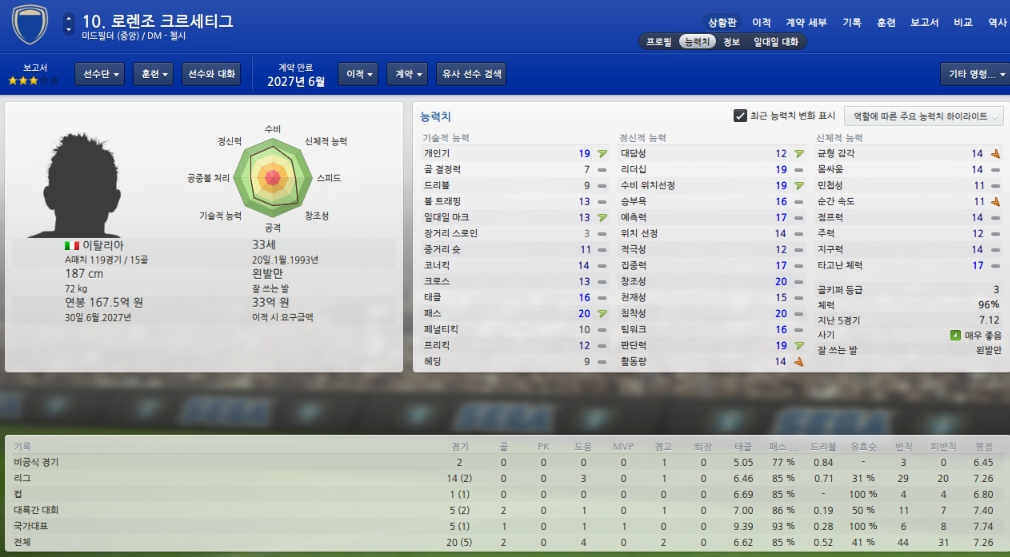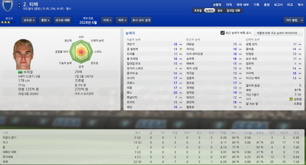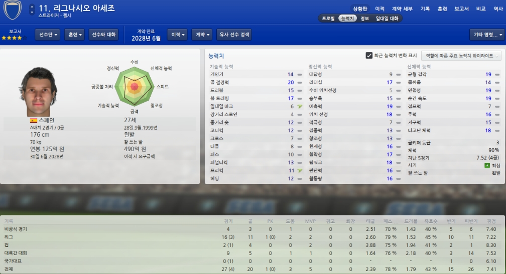 왼쪽측면과 최종공격수자리를 번갈아가며 출전하고 있습니다.