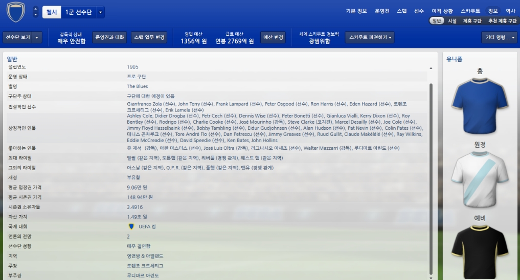 첼시의 팀가치는3700억 하향해서 1조4900을 기록하고 있습니다.