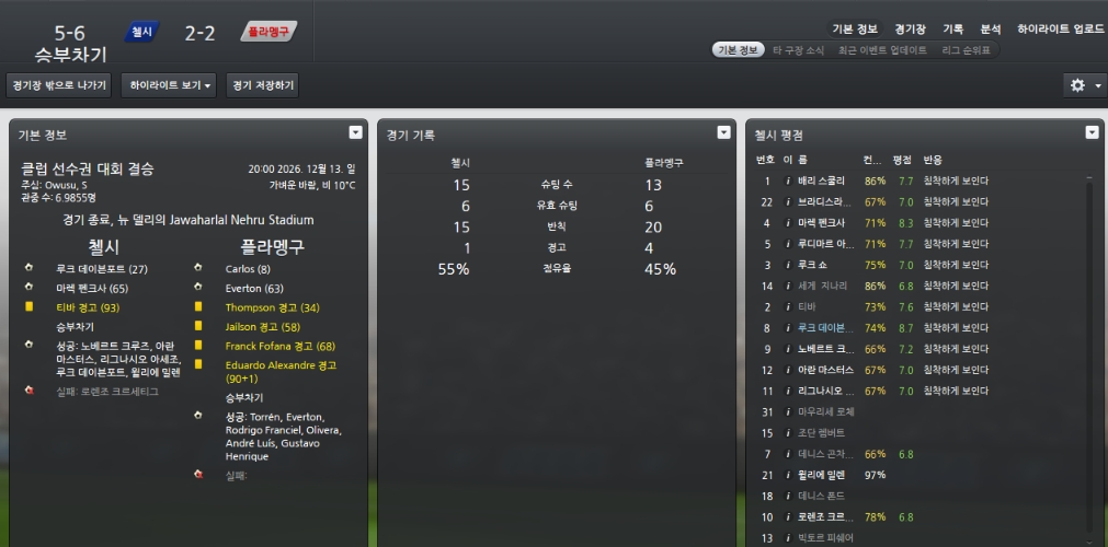 브라질의 플라멩구에게 승부차기패배를 당하며