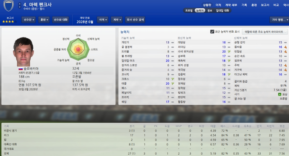 첼시중앙수비의 핵심인 마렉펜크사입니다.