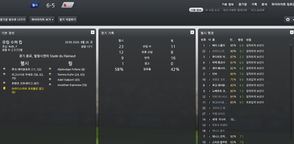 릴과 대접전을 치루며 6:5로 승리하였습니다.