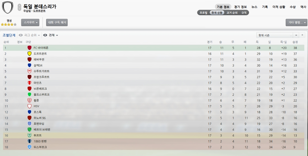 분데스리가에선 바이에른이 1위를 달리고 있습니다.