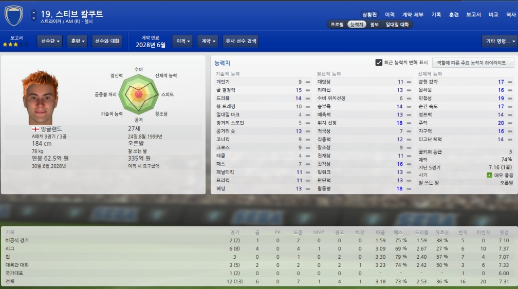 스티브 칼쿠트는 폭팔적인 스피드를 이용하여 상대수비수를 괴롭히는 역할을 하고 있습니다.