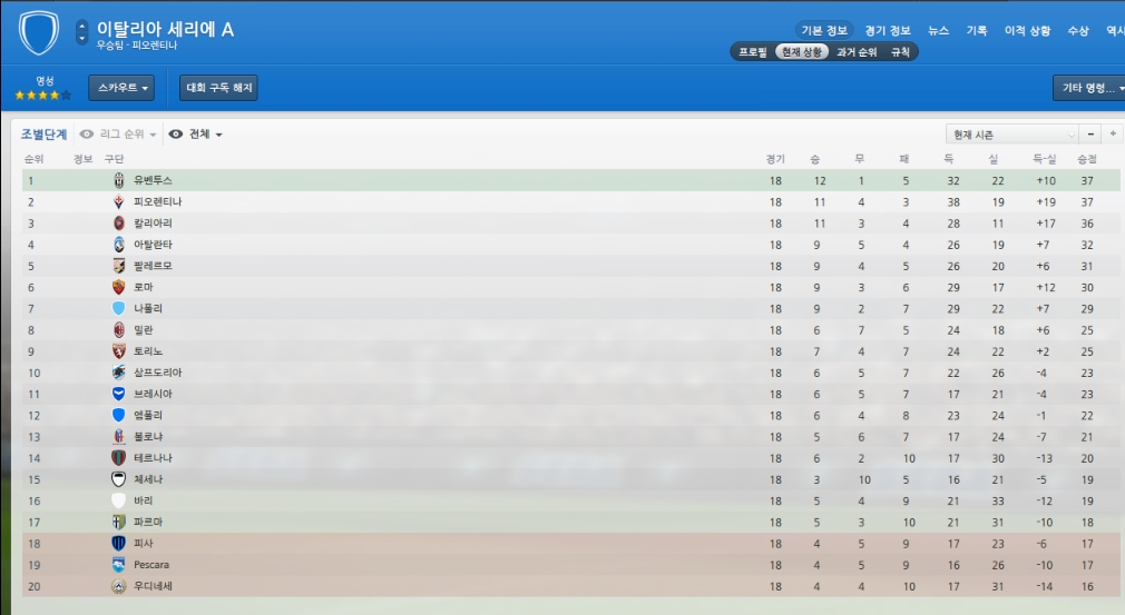 이탈리아리그에선 유벤투스가 1위를 달리고 있습니다.