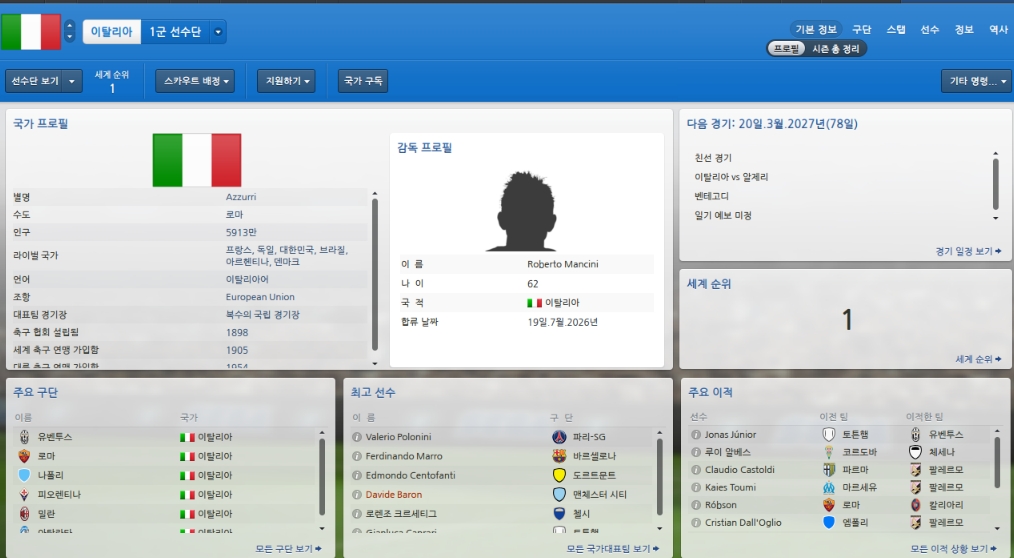 세계랭킹은 이탈리아가 1위로 오릅니다.