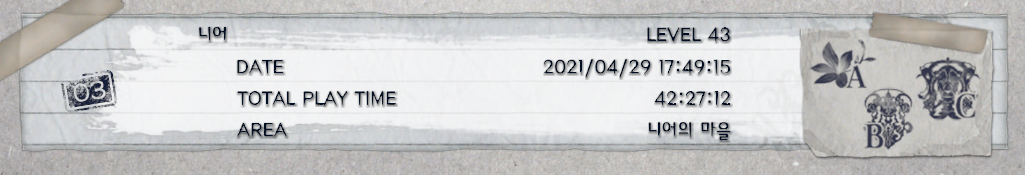 (이런 식으로 옆에 본인이 본 엔딩이 찍힌다. 본 세이브 파일은 A,B,C를 모두 클리어한 데이터이며 D엔딩과 E엔딩은 해당 세이브 데이터가 삭제되기에 별도 표기가 없다.)