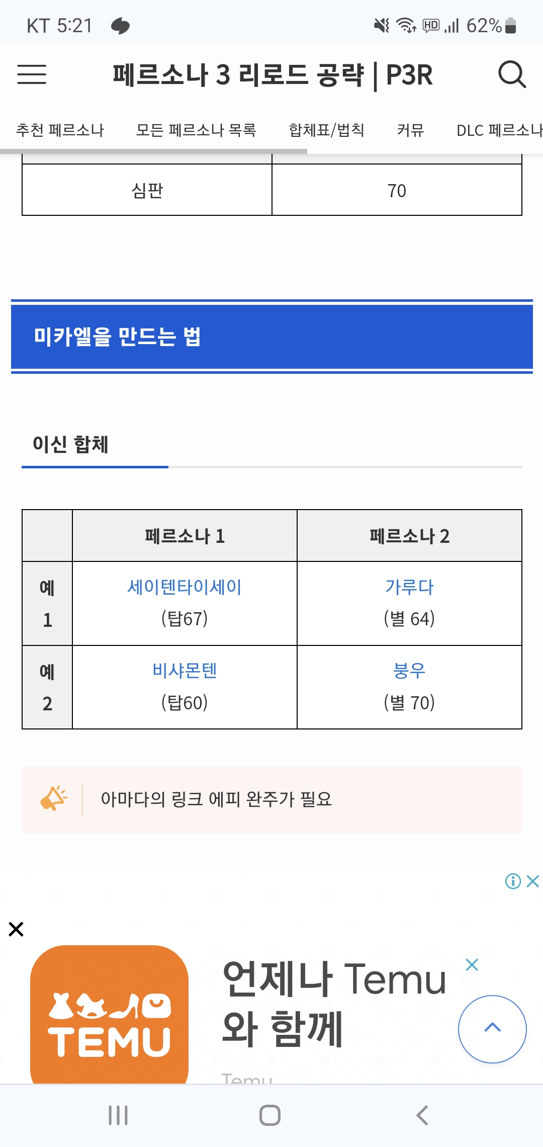 아마다 링크 못보신건가요? ㅜㅜ 아쉽네요.. 저도 스킬변화노가다 빼고 거의 할거다해서 그분잡을 페르소나 어떻게 만들지 고민중입니다.