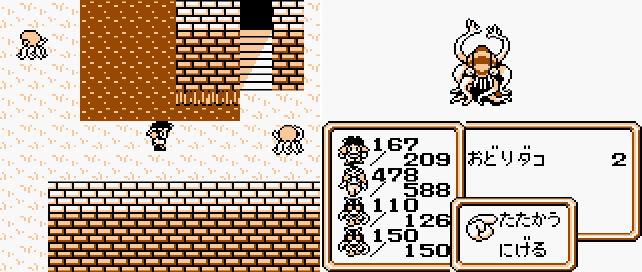성에는 문어들이 살고 있는데 이들과 접촉하면 '춤추는 문어(おどりダコ)'와 전투가 벌어진다.
