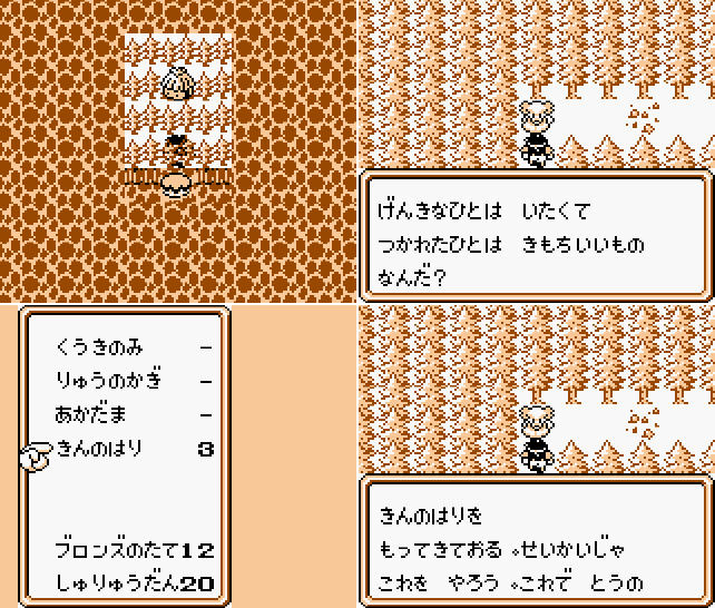 석화해제아이템 '금색침(きんのはり)'이 정답이라 가지고가면 '푸른 구슬(あおだま)'을 얻는다.