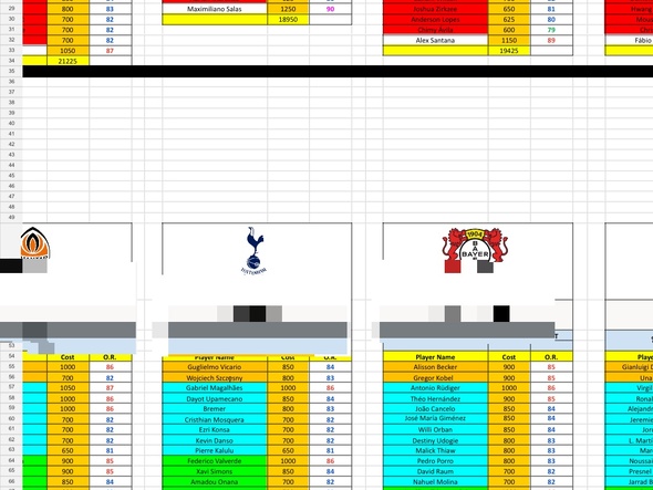 아래는 동호회 구성원들이 만든 팀 선수명단 예시입니다