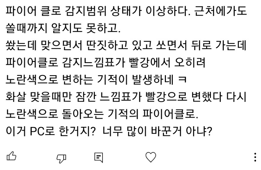그분 얘기로는파이클어클로 인식 범위가 이상하다고 조작이라네요ㅋㅋ