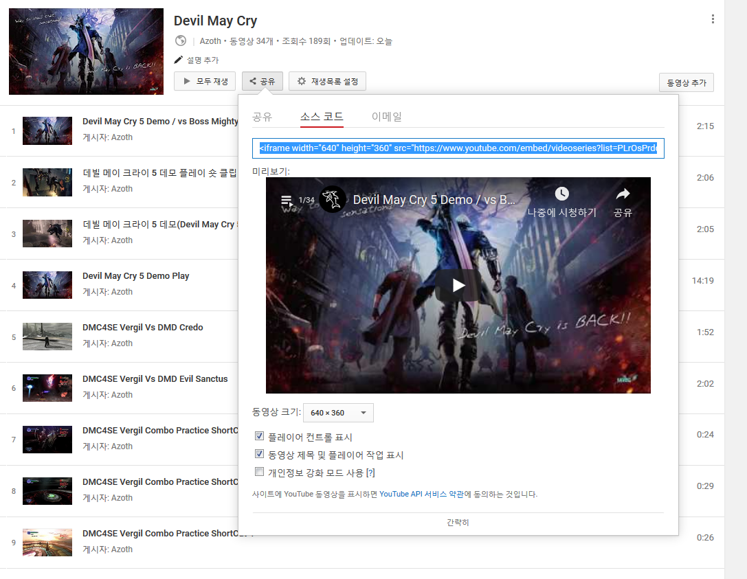 로딩이 지나치게 오래 걸리네요;; 죄송합니다만 재생목록 하나로 묶어주시면 감사하겠습니다... ㅠㅠ 사진처럼 재생목록 수정 탭에 들어가시면, 소스코드로 재생목록 전체를 하나로 묶어 태그로 올리실 수 있습니다.