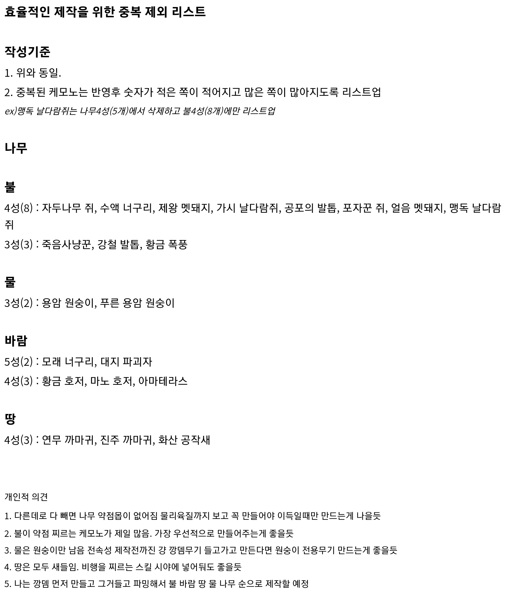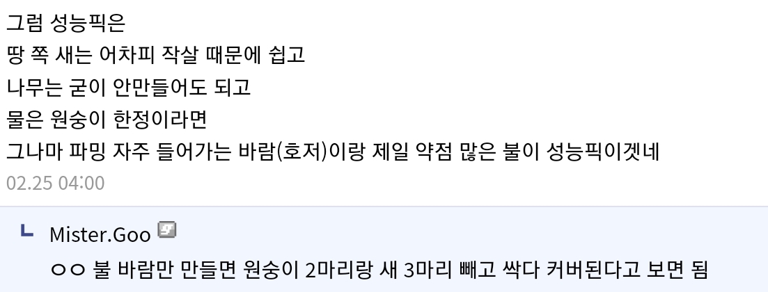 그럼 깡공무기~물~불~바람 순으로 제작하면 되겠군요 조언 감사드려요 | 23.02.27 03:02 | | |
