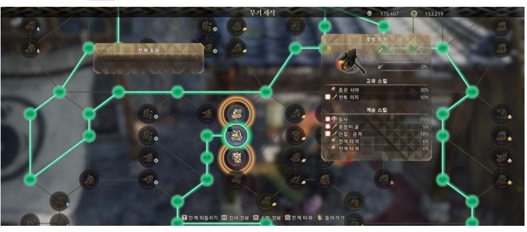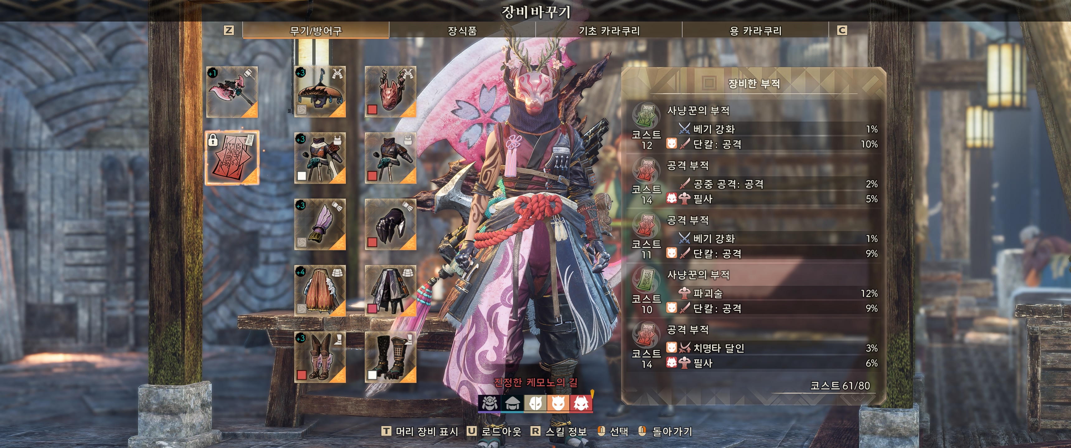 발도공격 치명타부적은 풀무작살로 공중전개공격위주의 플레이라면 좋은부적입니다. 제가 쓰고있는 부적착용한 스샷인데요.. 너무 필사로만 착용하는것보다 단칼도 챙기시는게 훨씬 딜상승에 좋습니다. 파괴술도 20~30%챙기셔야하고요 (너무 높으면 단칼 발동 지속시간이 끝나기전 또 부파되면 시간중첩되는게 아니라서 비효율적) 참고로 여우도끼는 둔기가 아니라서 베기강화옵션 적용받습니다. 저는 천상실패를 적절히 사용하면서 전개공격위주 플레이를 선호해서 공중공격 옵션도 적용한거구요.