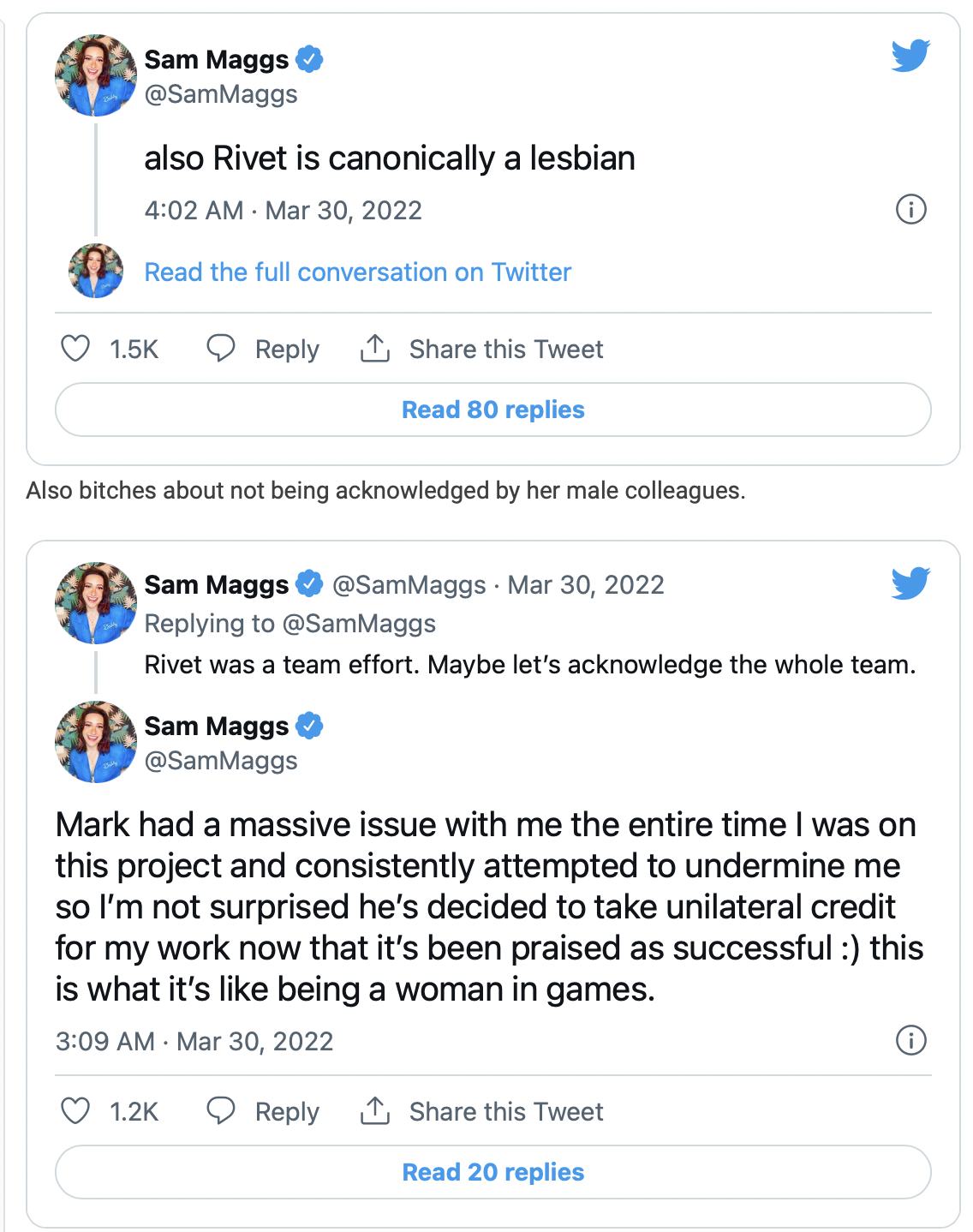 정황상 원래 각본가였다가 의견차이로 인섬니악에서 잘리고 겜 잘나가니 열폭하는거 같음 | 22.03.30 10:45 | | |