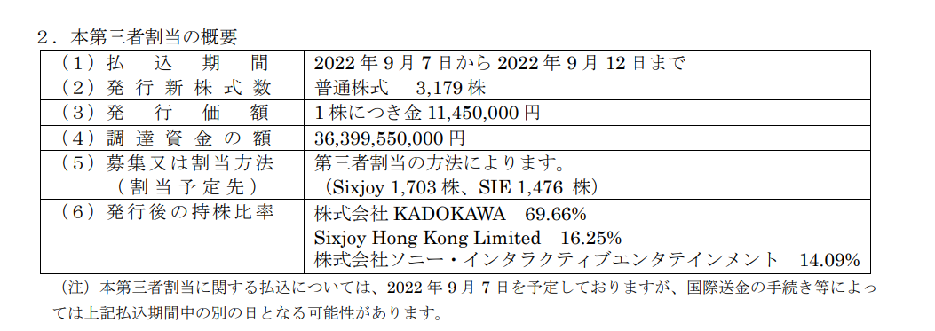 카도카와가 제 3자(SIE, 텐센트)에게 주식을 배정한 이유