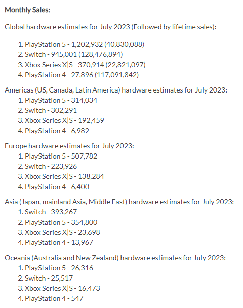 Asia (Japan, mainland Asia, Middle East) ps5-354,800대 중 일본 판매량은 194,100대 xbox-23,698 대 중 일본 판매량 4,700대 | 23.08.24 22:54 | | |
