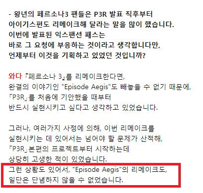 아틀라스에 낚여서 페르소나3 리로드 실드 치던 유저들만 바보됐죠. 리로드에서 FES의 후일담이 포함되어있지 않다는 정보가 공개되자 '중요한 후일담을 빼버리는 게 말이 되냐!'고 유저들이 화를 내니까 리로드 옹호하던 유저들이 '후일담이 뭐가 중요하냐? 그런 거 없어도 충분하다'며 반박을 했는데 '아닌데요? 우리 후일담 낼건데요' 라며 아틀라스가 바로 뒤엎어버린 거