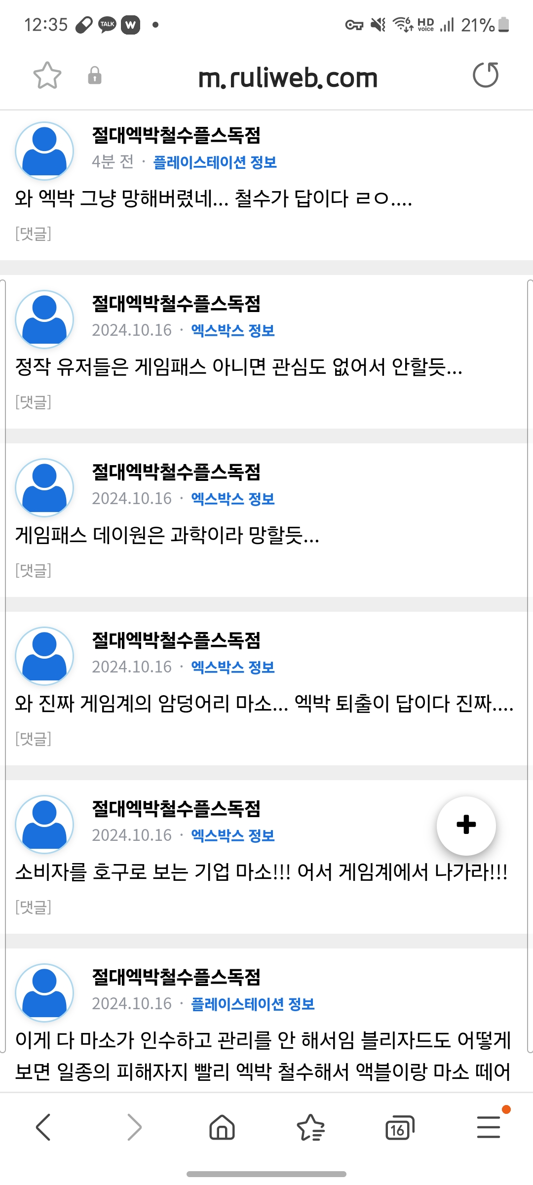 어우 엑박애들 추하네요. 이래봐야 다 티나요. | 24.10.17 08:46 | | |