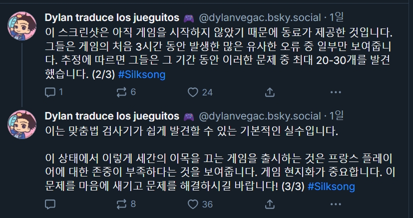 사실 번역할 때 게임을 주는 게 아니고 문맥도 어중간하게 주는 경우가 많아서(화자가 안 써있다거나, 순서가 뒤죽박죽이라든가...) 나중에 번역가와는 다른 팀이나 개인에게 검수 부탁하며 그걸 다 잡고 수정하는 프로세스를 진행해야 하는데, 돈 아깝다고 그것도 생략한 듯... 그럼 자업자득이지... | 25.09.07 13:55 | | |