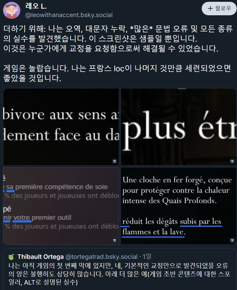 프랑스쪽도 번역 문제 있다는데 지원 언어 전부 검수 해봐야하는거 아닐까..