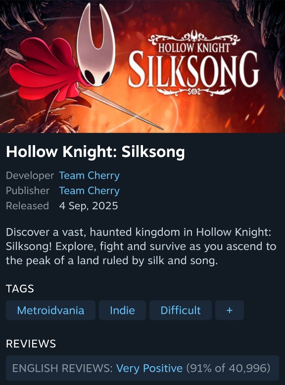 지난 며칠간, 저는 '할로우 나이트: 실크송'에 온통 마음을 빼앗겼습니다.