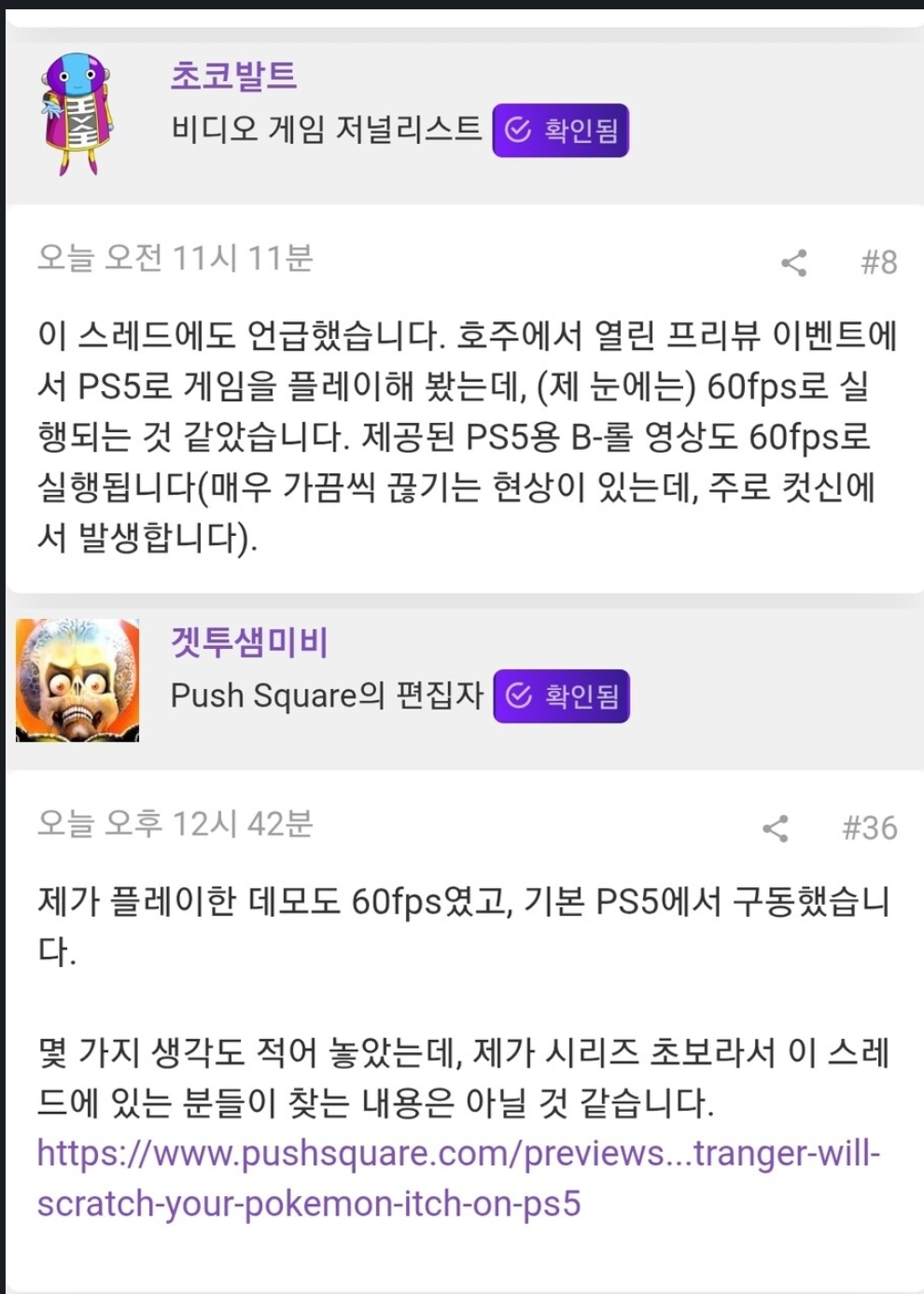 그 공식언급 이후에 시연 플레이에서 다수의 유저들이 60으로 보인다고 말했다는 내용 | 25.09.09 08:44 | | |