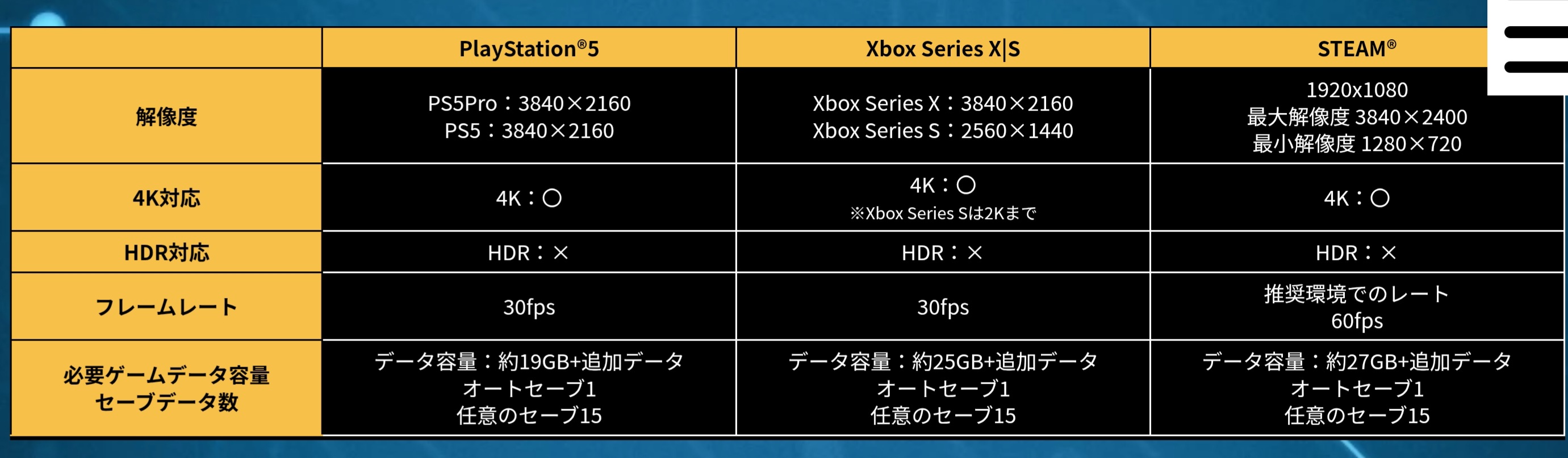 https://www.rpgsite.net/preview/18364-digimon-story-time-stranger-pc-settings-button-config-changing-protagonists-new-spoiler-free-inf Pc버전도 위의 표는 60fps가 최대인듯 나오지만, 최신 빌드 옵션창에서 144fps가 확인되었다는 기사도 있음. 표가 절대적이지 않을 수 있다는 얘기 | 25.09.09 09:02 | | |