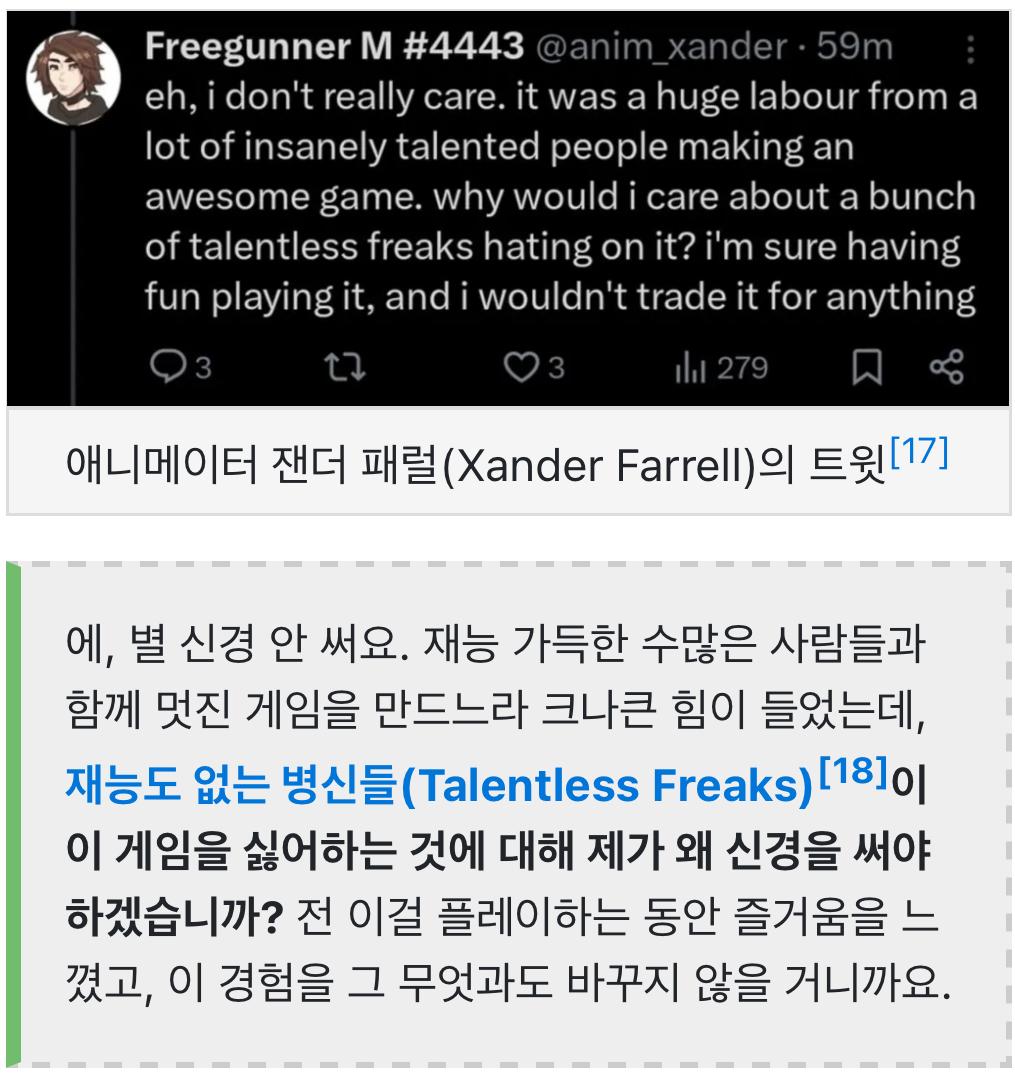 이후 한 개발자는 팬들이 게임의 실패를 즐기는 분위기를 비판했다.