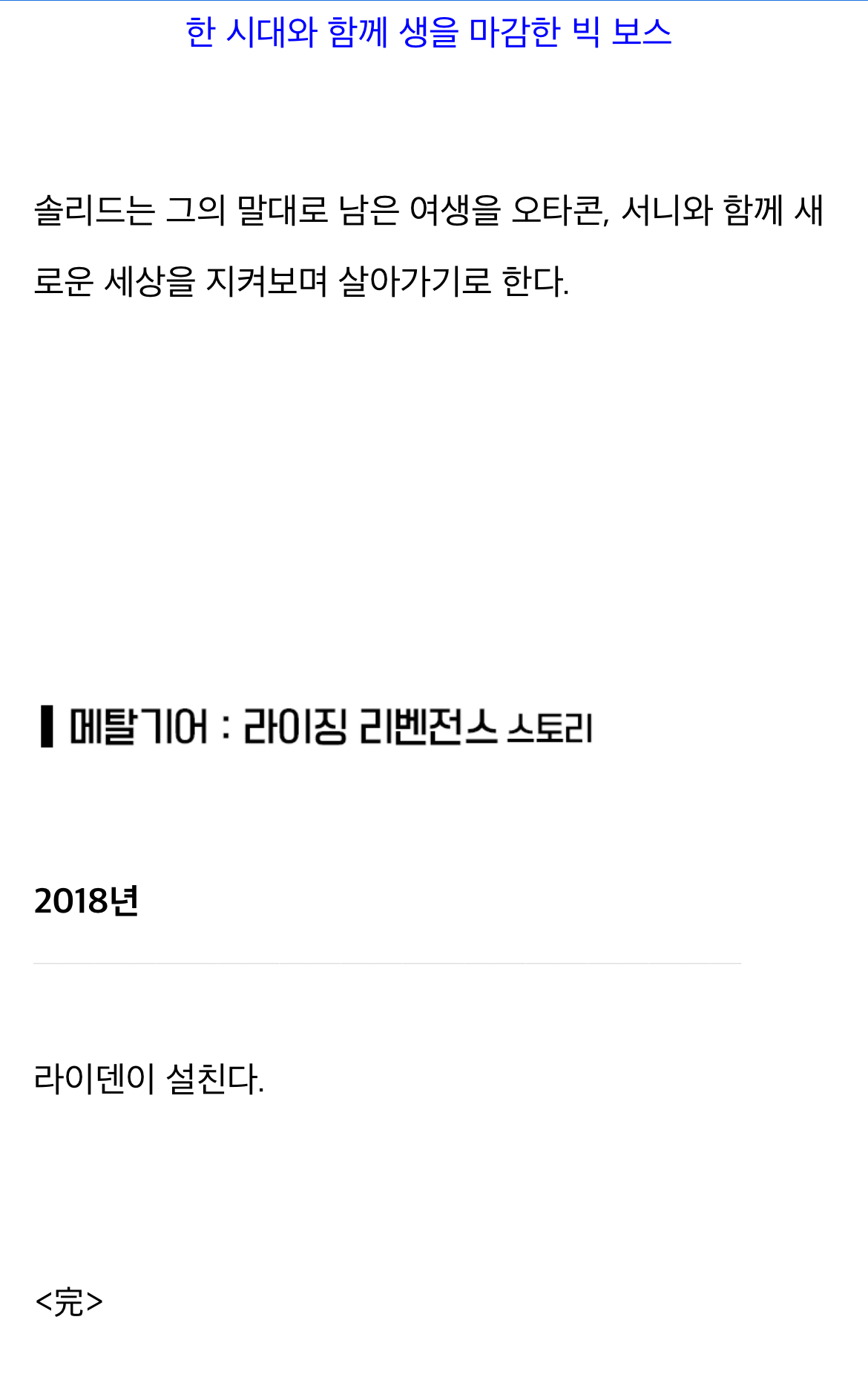 빅보스 그만 보고 전성기시절 솔리드 스네이크 보고 싶다 1 리멬좀