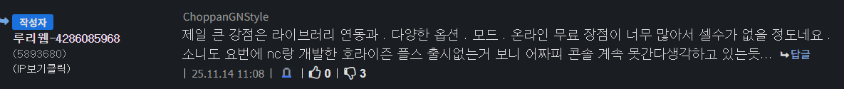 독점없다도 아님 그냥 플스도 그렇게 될걸? 이딴식의 글 | 25.11.14 16:02 | | |