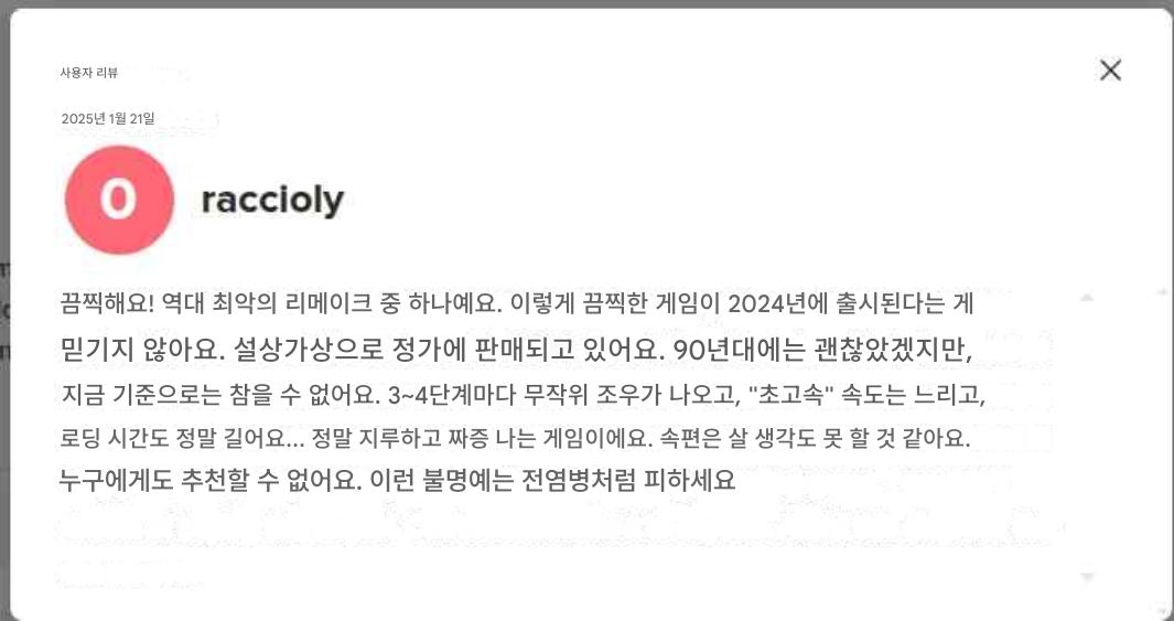 긴 게임이긴합니다만... 늘어지는 스토리 어중간한 사이드랑 미니겜들 정리했으면 파트1,2 를 한게임에 넣었어도 별문제 없었을겁니다... | 25.12.09 21:09 | | |