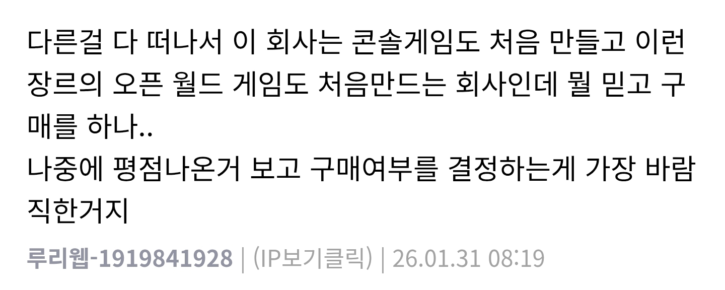 펄어비스 못믿고 살 생각없지만 손해볼 유저들 생각해서 대신 욕해주시는 훌륭하신 분이시군요. | 26.03.13 08:16 | | |