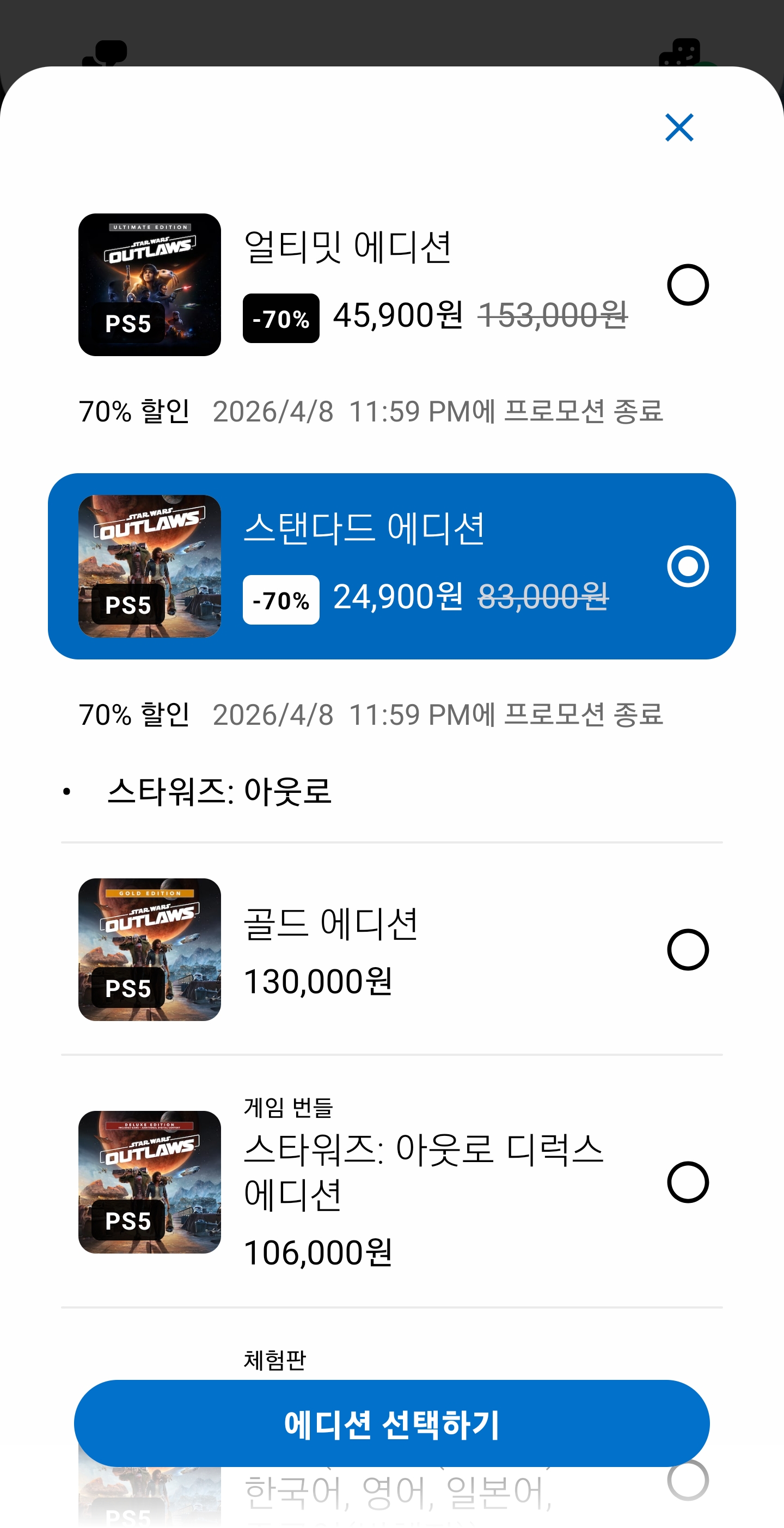 스탠다드는 해당되지 않습니다. 이미 할인이 끝난 골드, 디럭스 에디션만 그랬습니다. | 26.03.30 17:48 | | |