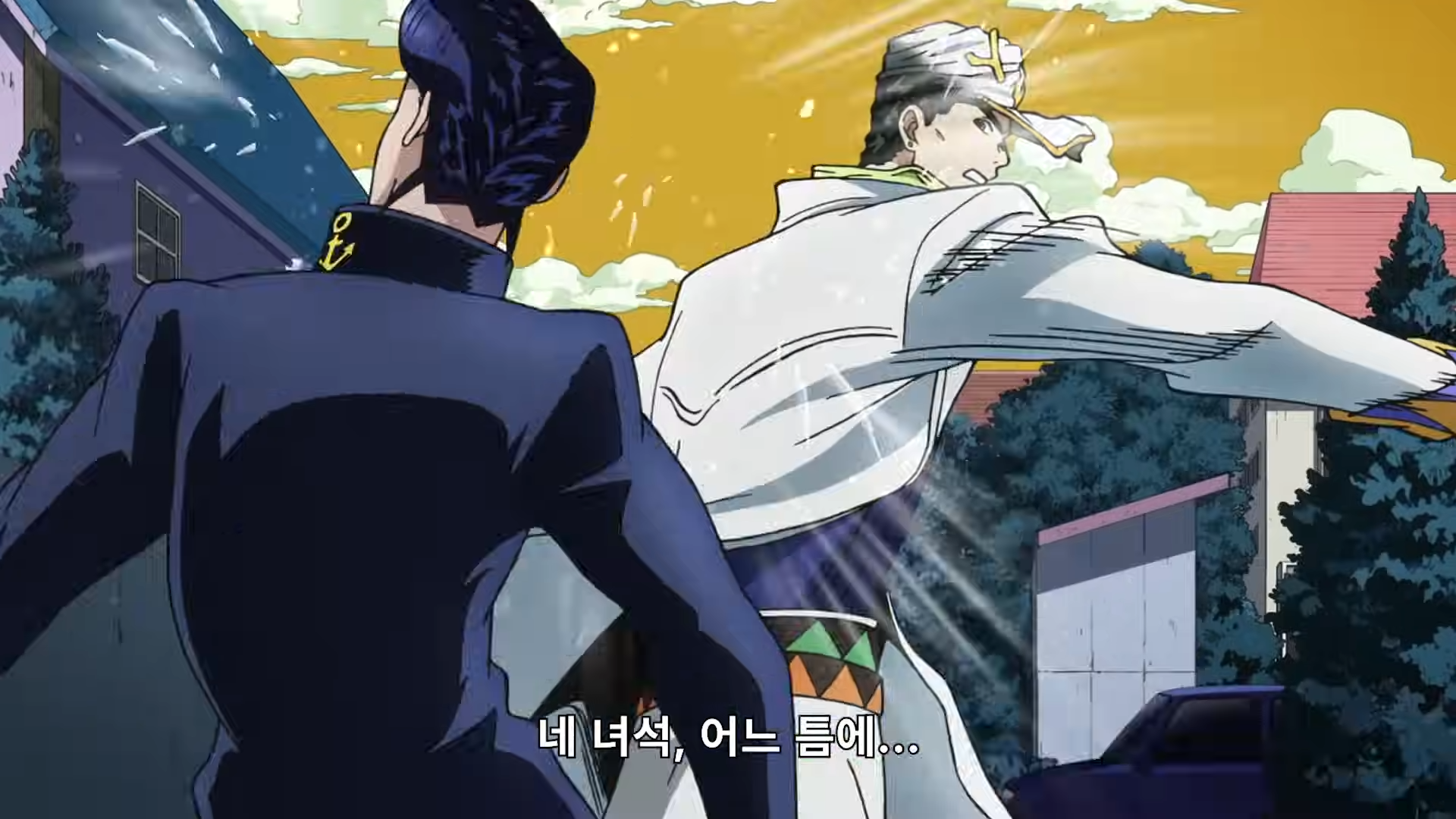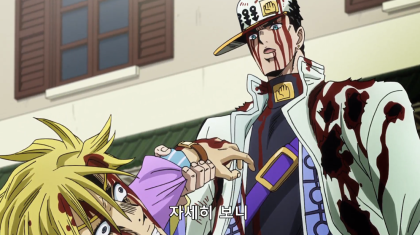이정도도 못버티고 쓰러지면 죠스타 가문이 아니다. 뭘 봐 일어나 죠팡매야.
