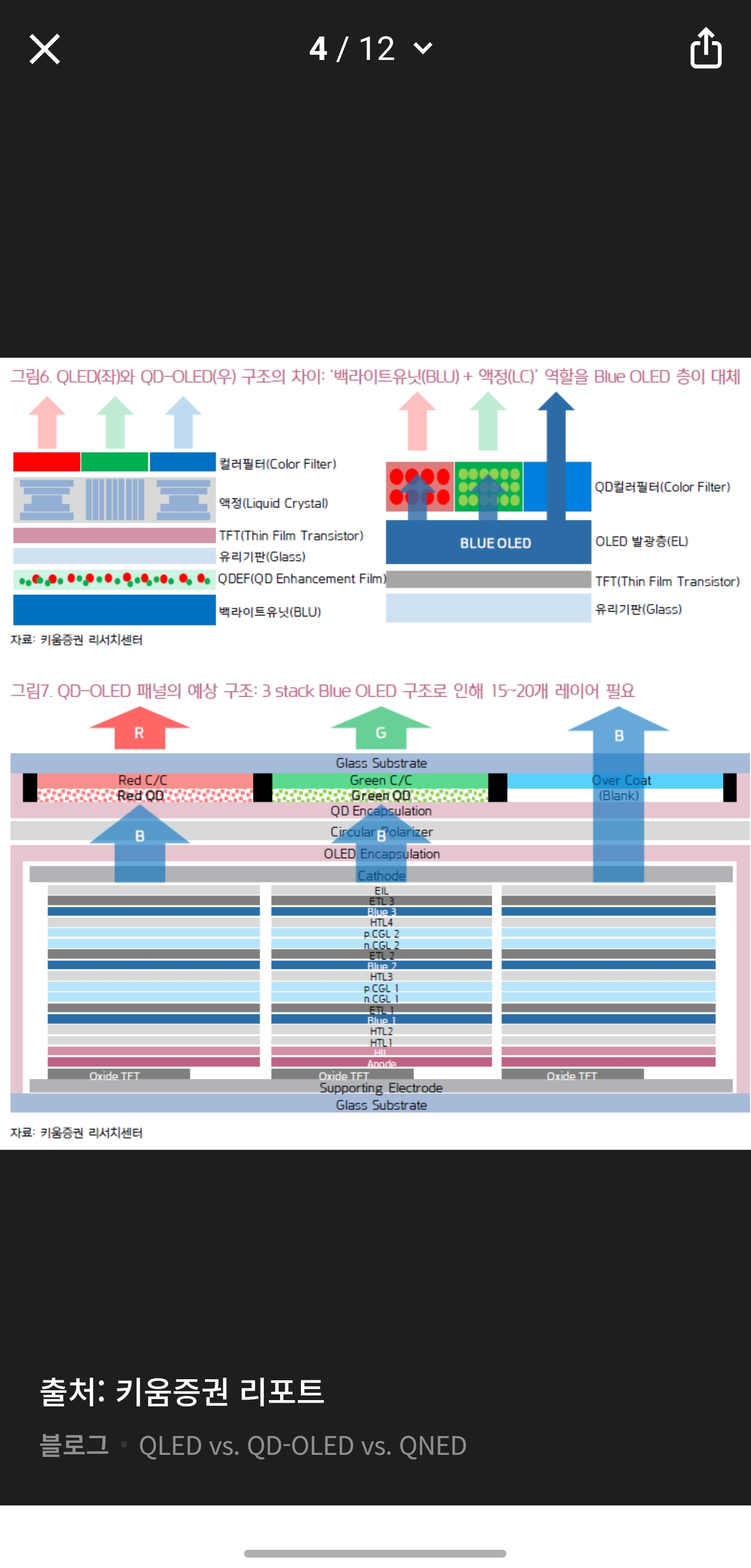 삼성이 qled라고 마케팅 하던게 퀀텀닷 디스플레이가 아닌 퀀텀닷 필터를 씌운 마케팅 용어고 이를 어디따 씌우느냐의 차이입니다. 그래서 같은 oled나 lcd라도 삼성과 엘지가 달라요. 삼성은 청색임. | 25.11.11 17:19 | |