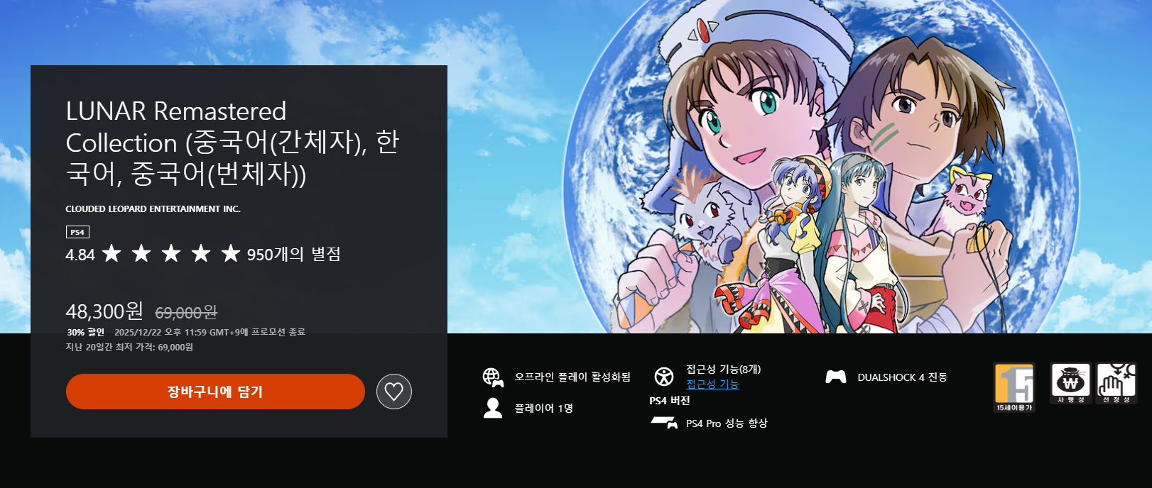 정가는 좀 그렇지만 저 가격이면 추억삼아 해보시는 것도 괜찮을 것 같아요. 루나는 인게임 영상도 최대한 깔끔하게 해상도 올리려고 애쓴 느낌이 듭니다. 옛날 브라운관에서 플레이했던 그 영상 화질이 아니더라구요. 그란디아는 특히 2편이 강력한 마법의 연출이 엄청 길어서 일부러 안 썼어요. 고전작 리마스터는 전투배속모드 필수라고 생각합니다. 플레이 체감이 확 달라요. | 25.12.03 13:00 | |
