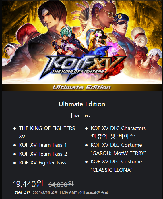 [잡담] 킹오파 15 얼티메이트 70퍼 할인 psn